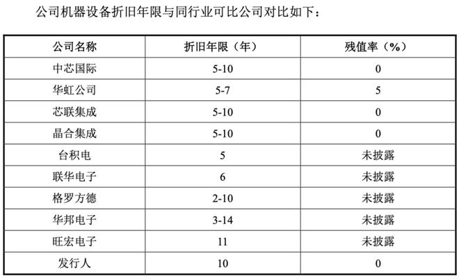 梳理其披露的相关数据,新芯股份的固定资产折旧政策相比同行业公司看上去更宽松。比如,作为固定资产重要类别的“机器设备”,行业普遍给出折旧年限为“5—10年”、“5—7年”等更短年限,武汉新芯给出的折旧年限则为“10年”。