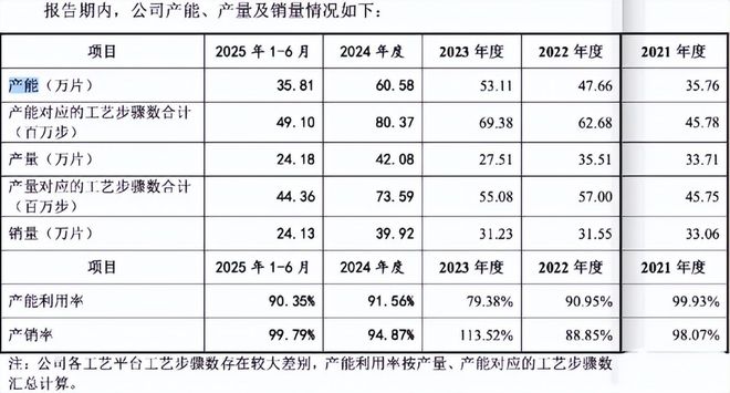 武汉新芯已披露的数据当中,产能利用率最为“亮眼”。2021至2025上半年,各报告期的产能利用率分别为:99.93%、90.95%、79.38%、91.56%、90.35%,几乎全程“打满”。不过,其计算出这些数据的方法却与行业通行方式截然不同。