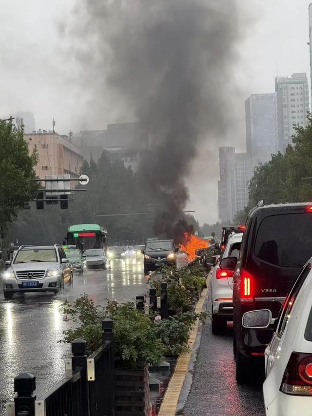 郑州花园路车辆突发起火,警方确认无人受伤事件