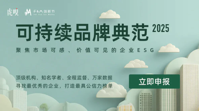 2025“可持续品牌典范”榜单评选火热申报中,我们希望找到并彰显那些真正将ESG理念融入血脉的公司,创造出“市场可感、价值可见”的商业典范。点击下方图片,立即申报: