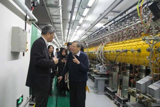 散裂中子源的主要设施位于地下十多米,建设初期经费紧张,关键位置没有安装电梯,所以不便邀请杨先生前来。直到2019年2月,在地方政府资助下,我们才在直线加速器隧道修了电梯。于是,2月19日,我们邀请了杨先生参观散裂中子源。那时他身体不错,基本是自己拄着拐杖走,非常有兴趣地听取我们的汇报,参观了散裂中子源的全部主要设施。
