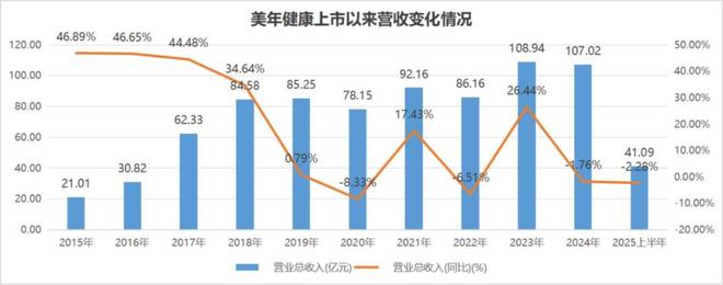先是2019年出现了上市以来的首次亏损,后来在公共卫生事件期间业绩忽增忽降。2023年,美年健康营收首次超过百亿,却也从此开启了下行模式。2024年,美年健康实现营业收入107.02亿元,同比微降1.76%;归母净利润2.82亿元,同比大幅下滑44.18%。