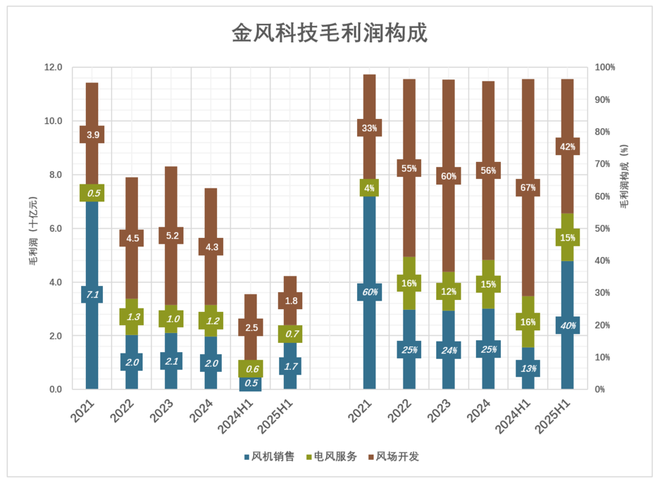 进入2025年,风机毛利润17亿、同比增长263%,占毛利润的比例回到40%。
