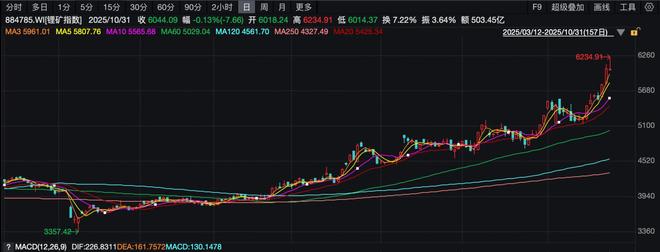 复盘来看,第三季度,锂矿指数(884785.WI)的走势明显较锂价走势更为稳健,期间并无大幅回撤,累计大涨27.54%。且进入10月下旬,走势更加陡峭,7-10月累计涨幅高达46.10%。![]()