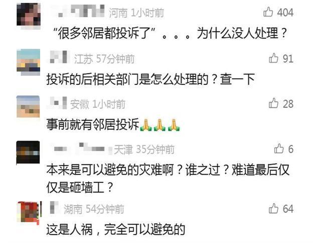 也有网友质疑,为什么邻居已经投诉了,但还是没能避免悲剧发生,就是人祸。