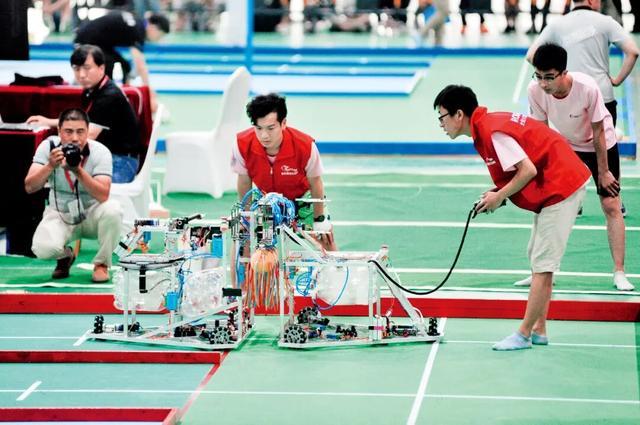 2018年6月19日,山东济宁市,第十七届全国大学生机器人大赛Robocon赛(北方赛区暨总决赛)现场。图/视觉中国