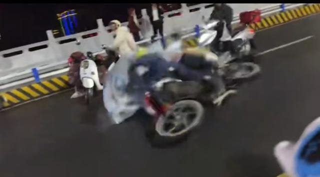 湖南怀化溆浦大桥因雨夜桥面湿滑导致多辆两轮车跌倒,为确保市民安全,大桥紧急封闭,提醒市民注意交通安全,避免夜间行驶,特别是在恶劣天气条件下需更加小心谨慎。