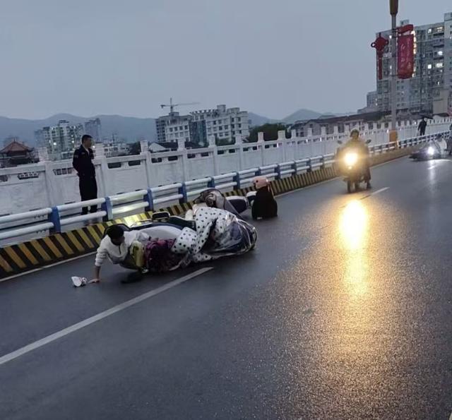 11月2日傍晚,湖南怀化市溆浦县城区主干道溆浦大桥上,疑因桥面出现油污、雨水混合物,导致多辆两轮车失控跌倒,被紧急封闭。
