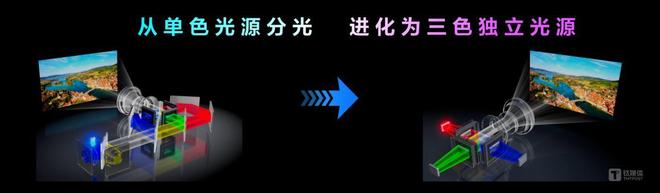 “三芯片+单色光源”升级为“三芯片+三色光源”
