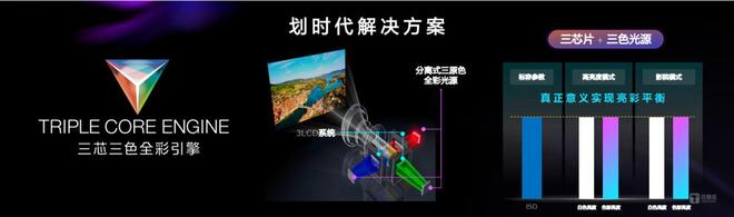 “三芯三色全彩引擎”实现亮彩平衡的视觉效果