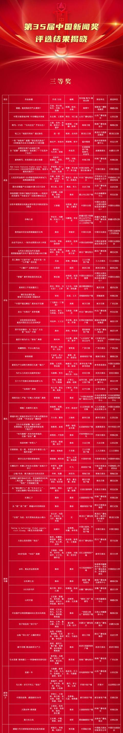 11月5日,由中华全国新闻工作者协会主办的第35届中国新闻奖评选结果揭晓。
