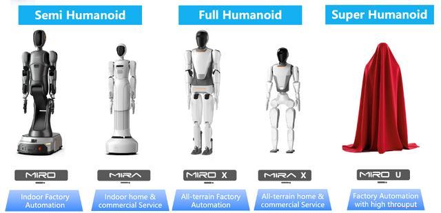 其中,第一代美罗、美拉是轮式机器人,分别应用在制造和家居场景;第二代美罗X、美拉X是双足式全人形机器人,第三代美罗U则为超人形机器人,目前暂未亮相。