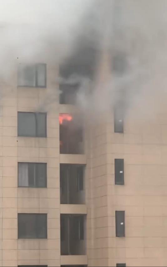 湖北小区火灾消防员爬楼梯扑救,失火原因待查