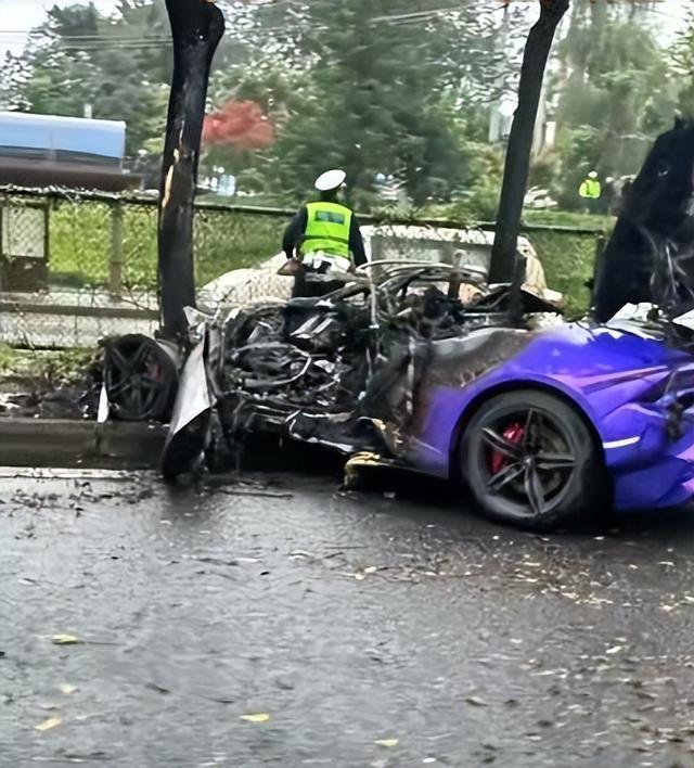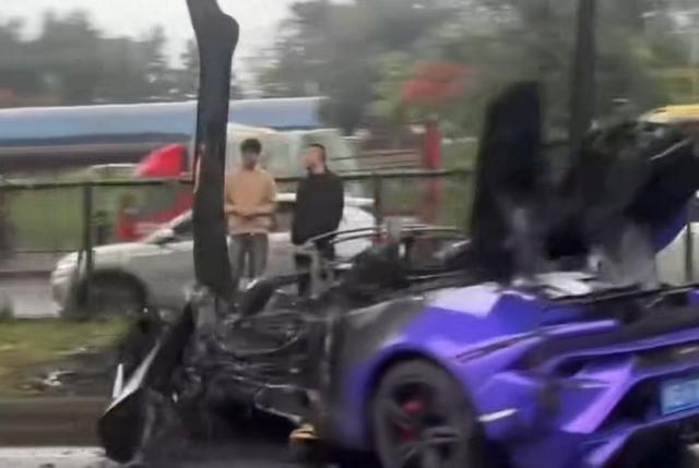 11月6日,四川成都一辆兰博基尼跑车冲上街头绿化带致车头燃起大火,引发关注。
