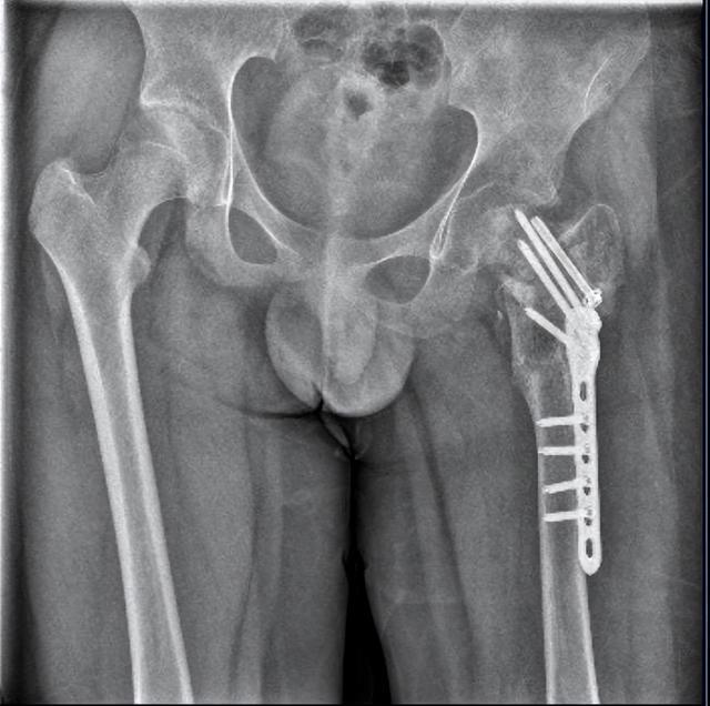 ▲小武左股骨陈旧性骨折,打了钢针、钢板 图据受访人