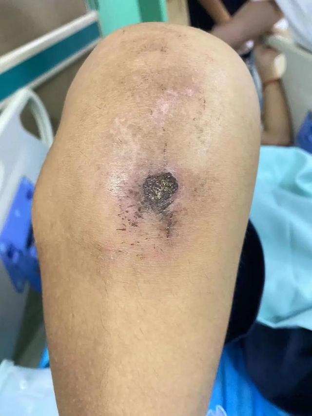 小武说,他的多处伤口都是在太阳下的水泥地上拖行造成的。“流血后,脚后跟起了两个水泡,教官给我戳破,简单消毒后就不再管。”他的伤疤,多次反复结痂。