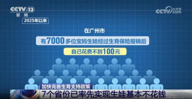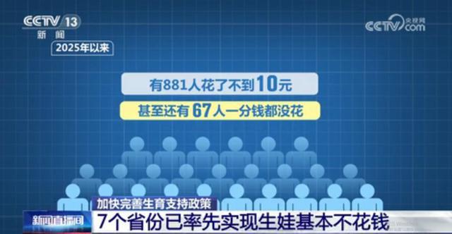据央视新闻报道,近年来,我国全面提升住院分娩医疗费用保障水平,积极推动政策范围内生育医疗费用全额保障。吉林、江苏、山东等7个省份已率先实现生娃基本不花钱。