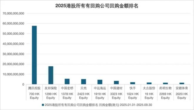 当然,中国资产也不仅包括A股公司,还包括大量H股和美股公司。相关统计显示,港股主要公司中,今年1~3季度,回购金额最多的是腾讯,第二名是友邦保险,第三名是中国宏桥,第四名是贝壳。