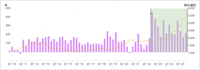 2025年4月底之前的那一轮金价狂飙,主要推动力来自全球央行的持续购金行为。数据显示,仅中国央行在2025年前四个月累计增持黄金48万盎司,而随后六个月的增持速度有所放缓,累计增持32万盎司。
