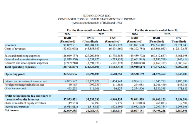 8 月 25 日,拼多多发布 2025 年第二季度财报,即便当季营收继续放缓至 7%,但在非公认会计准则下,当季拼多多净利润 327 亿元,同比跌幅仅 5%,比市场预期的 223.9 亿元高出 46%。