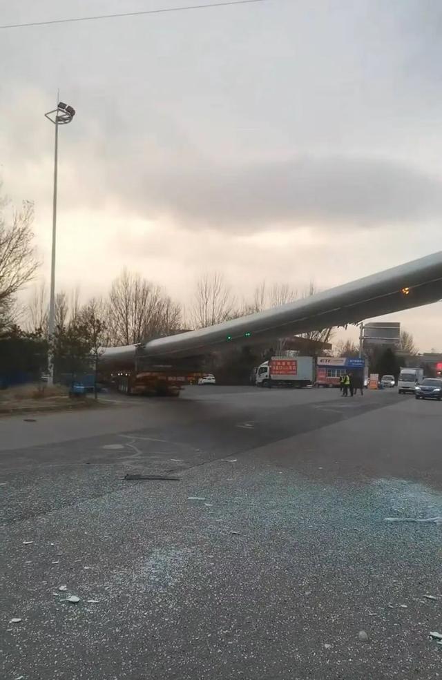 11月16日上午,记者联系上这位发视频的网友,“它不是发生在高速路上,是下了高速,在张家口北收费站附近,昨天下午5点多,我从那路过看到的。风电(桨叶)片老长了,目测最起码有几十米长,大巴车是撞在它后边尾部。”