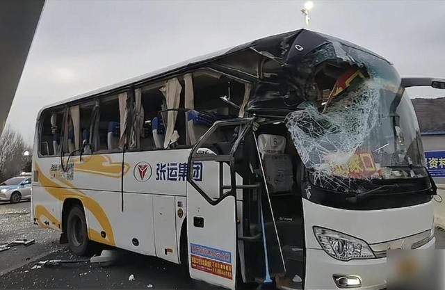 11月15日下午,河北省张家口市一辆大巴车与一辆拉运风力发电桨叶的大货车相撞,造成3人受伤。