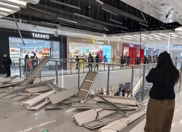 视频显示,发生吊顶脱落的地方位于商场一处扶梯上方3楼,脱落面积约30平方米,脱落的吊顶散落在扶梯上以及各楼层地面,现场扬起不少灰尘。据另一画面显示,有顾客被掉落的吊顶砸伤,可以看到伤者身旁地面上有血迹和带血的纸巾以及脱落的吊顶碎片。