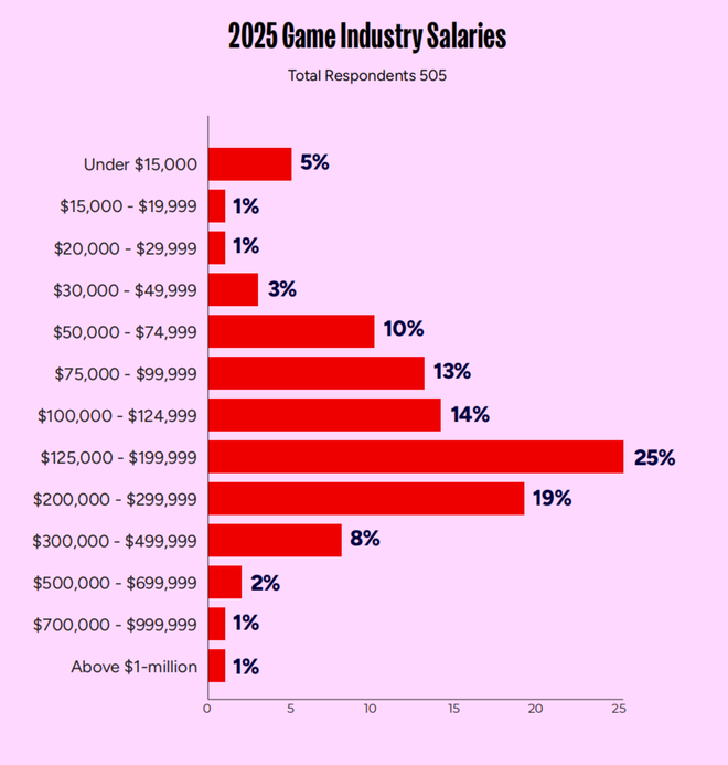 2025年美国游戏行业从业者的平均年薪约为14.2万美元(约100万人民币),薪资中位数为12.9万美元。