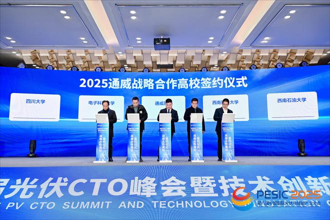 在战略合作高校签约仪式环节,通威股份有限公司与西南财经大学、西南石油大学、四川大学材料科学与工程学院、电子科技大学光电科学与工程学院分别签署战略合作框架协议,重点围绕人才培养与科研协同两大方向深化校企、院企合作。