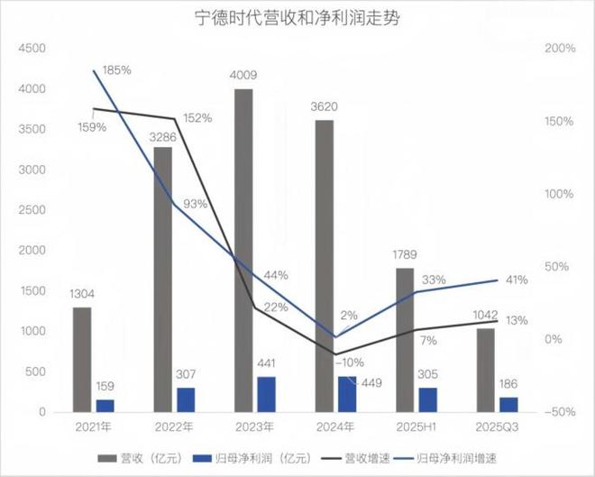 显化在财务数据上,2024年宁德时代营收变成了负增长,今年上半年恢复到7%,但是和之前每年翻倍的速度也不可同日而语。