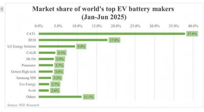 和所有在各自领域实现绝对统治的龙头企业一样,宁德时代正在遭遇结构性的增长天花板。根据韩国能源市场追踪机构SNE Research 的报告,今年上半年,宁德时代在动力电池的市场份额达到了37.9%,稳居全球第一的绝对统治地位。