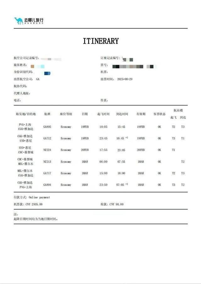 近日,来自上海的游女士很苦恼,她于今年8月29日,在去哪儿旅行App上购买了2026年春节上海往返新西兰的机票(新西兰航空和鹰航的联程票),打算利用春节假期出国玩一趟,然而机票买了两个月后被去哪儿平台单方面给退了。对此,去哪儿平台解释称,是因为运价错误,所以航空公司作废了机票。