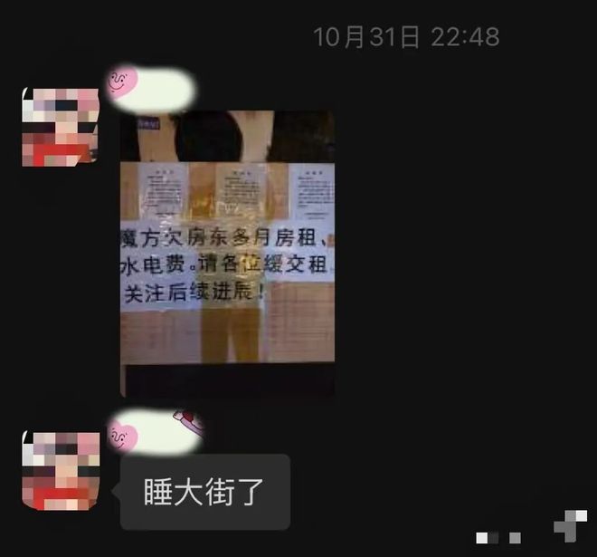 一名网友晒出了一段聊天记录截图,截图显示10月底某处魔方公寓拖欠房东多月房租、水电费。