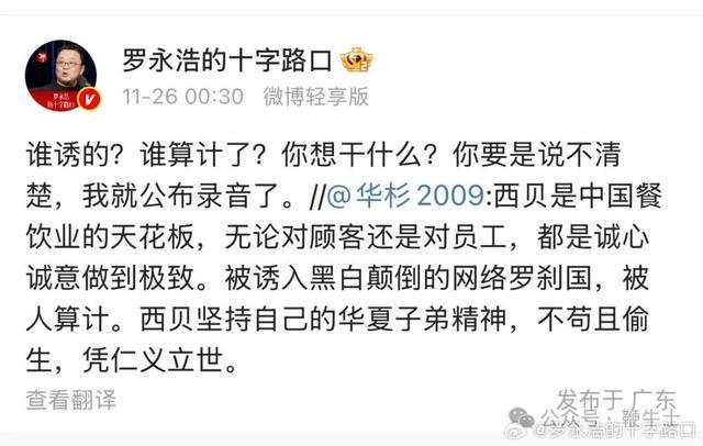 事件缘起华杉昨天在微博再次点评西贝事件,引发罗永浩回怼。