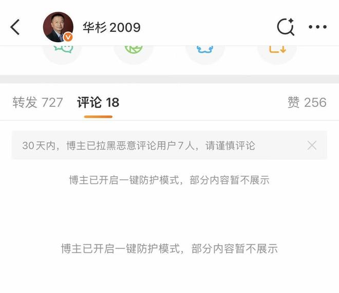 三言发现被罗永浩回怼后,华与华的华杉已开启微博一键防护功能。该功能会限制未关注人的评论、转发等。