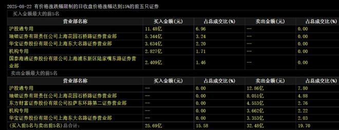 以22日为例,沪股通专用席位,分别位居11.48亿元买入首位和12.86亿元卖出首位,净卖出1.38亿元。