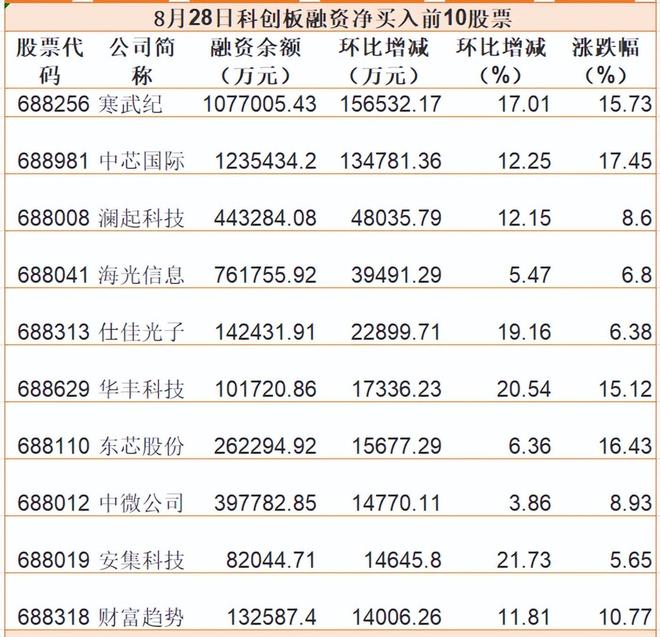 这一天,寒武纪没有登上龙虎榜,机构、游资、北上资金的表现无从得知。但其最新融资余额107.70亿元,环比上一日增加15.65亿元,在科创板中排名第一。