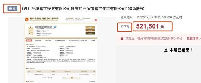 潇湘晨报此前报道,2022年12月,钱先生在一场1元起拍、15人报名的司法竞拍中,经过698轮加价,以52.15万元拍到浙江金华兰溪县一家因破产清算被拍卖的公司兰溪市嘉宝化工有限公司(以下简称“兰溪嘉宝化工”)100%股权。