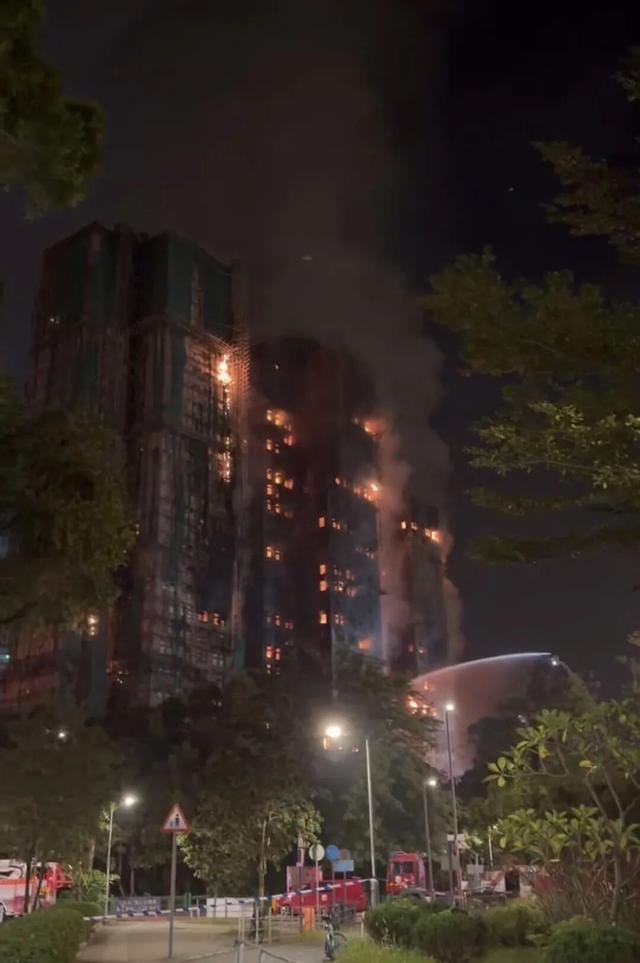 直至当日22时40分左右,多位香港市民前往现场提供援助。市民芳姐告诉中国新闻周刊,火势仍在蔓延,部分窗户内可见明火,仍有浓烟冒出。多位受访者提供的视频显示,火灾现场有多辆消防车,不少住户搬出行李到庇护中心。
