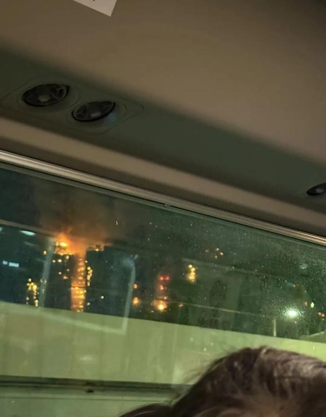 11月26日18时许,徐女士透过巴士车窗外看到橙黄色熊熊火焰直蹿夜空 图/受访者提供