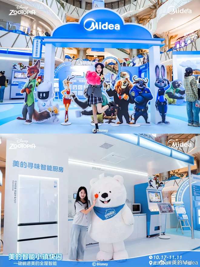 名创之外,《疯狂动物城2》也向不少品牌开放了线下权益,如COSBABY的线下快闪主题展、主题门店以及店外LED屏幕主题空间;知名玩具零售品牌玩具反斗城在杭州&重庆&沈阳举办限时主题快闪;美的在武汉限定·美的疯狂小镇做了《疯狂动物城2》的IP联动。这些碎片化的线下场景和体验,让大众以最低的成本短暂进入动物城,获得情绪价值。