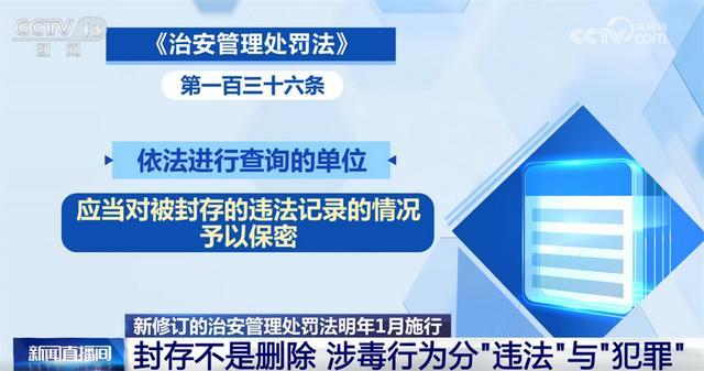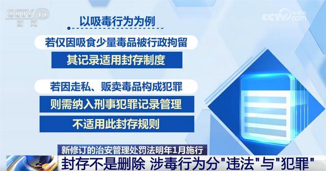 据央视网消息,将于明年1月1日起实施的新修订《中华人民共和国治安管理处罚法》中第一百三十六条确立的“治安违法记录封存制度”近日引发关注,其中,因吸毒有治安处罚记录也在被封存的范围内引发热议。一边是每年超800万曾受治安处罚群体对“摆脱终身标签”的期待,一边是公众对“记录封存是否等同于纵容违法”“是否为特定人群开绿灯”的担忧,围绕这些热点问题,我们来看一看专家怎么说。