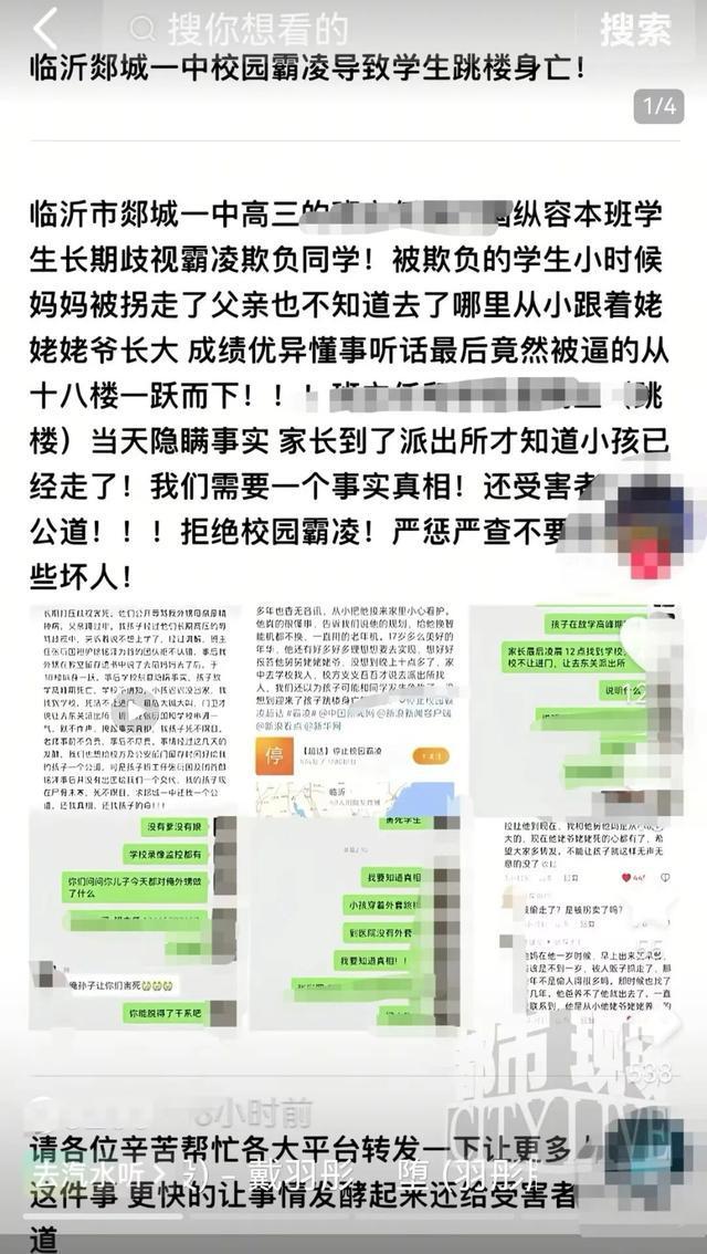 山东郯城一中高三学生坠楼身亡,校方否认与霸凌传言有关