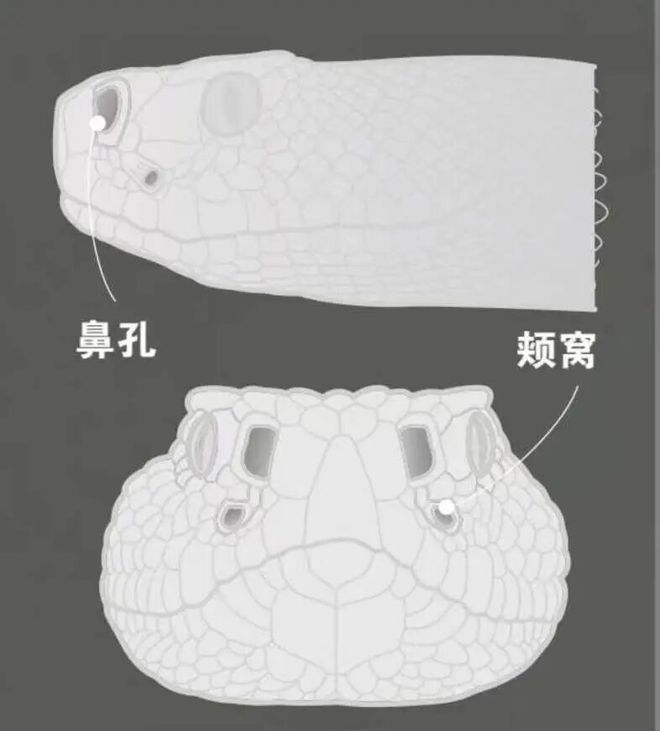 蝮蛇、响尾蛇、竹叶青等蛇类在眼睛与鼻孔之间有一部位叫颊窝,具有灵敏的热感应功能,它能感受到0.001℃的温度升高,并在35毫秒内做出反应。这让蛇即使是身处黑暗中,也能像拥有视觉能力一样,可以感知周围的环境变化。