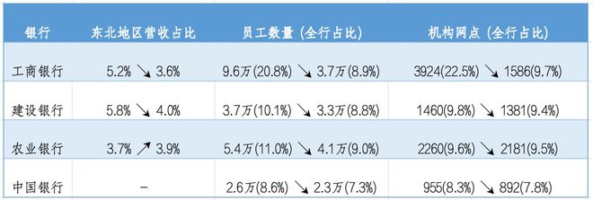 建行在东北地区的营收占比从5.8%降至了4%,其在东北的员工总数从3.7万余人减少至3.3万人,缩减超过4000个岗位。