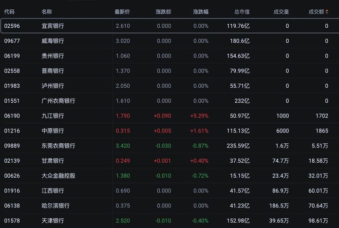 股价低于1港元的仙股共有三家,除哈尔滨银行(0.375)外,还有中原银行(0.315)和甘肃银行(0.249)。