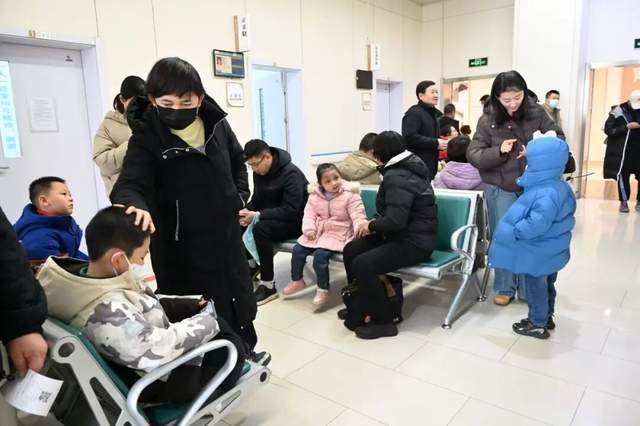2025年12月1日,内蒙古医科大学附属医院儿科,家长陪儿童候诊流感。摄/中新社记者 刘文华