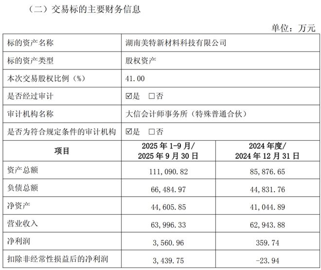 雪天盐业(600929.SH)日前公告,拟向控股股东2.6亿收购湖南美特新材料科技有限公司(下称“美特新材”)41%股权。收购完成后,雪天盐业将成为美特新材的控股股东,合计持股61%。