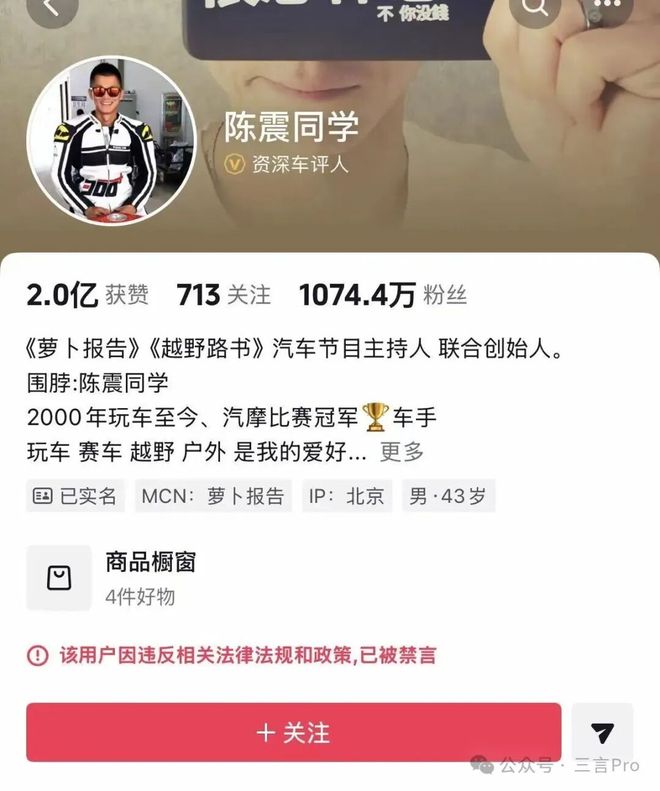 目前,陈震全平台的账号都已被禁言。