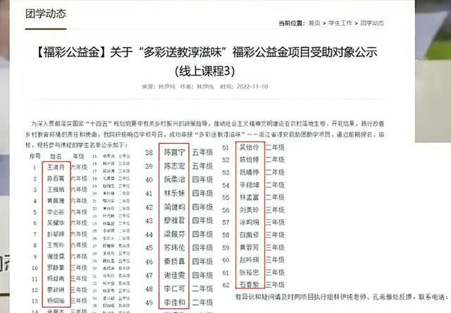 潇湘晨报此前报道,12月5日,有网友注意到,杭州师范大学人文学院官方网站发布的福彩公益金项目受助对象公示中,名单里的部分人名出自百度文库《10000中国普通人名大全》文档。